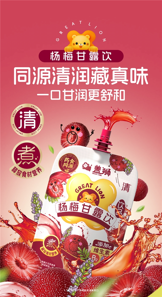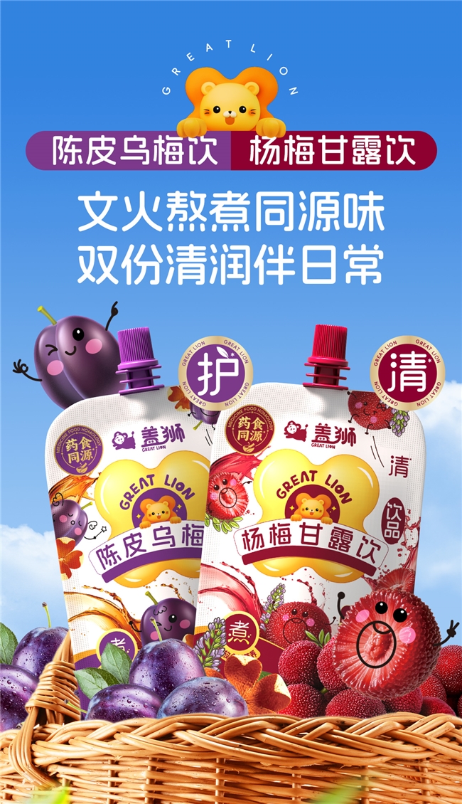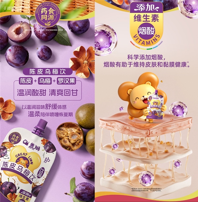 “一日之计在于晨,一年之计在于春。”在万物复苏、生机勃发的春日,健康零辅食品牌盖狮全新推出两款春日饮品——陈皮乌梅饮与杨梅甘露饮。两款新品配方灵感源自明代宫廷医籍、宋代官修药典的传统饮食智慧,辅以果汁调味,精选陈皮、乌梅、罗汉果、麦冬、天冬、茯苓等国家卫健委公布的药食同源食材,以200目滤网精细过滤,经匠心熬煮,将传统智慧转化为可感知的品质体验,为消费者开启春日焕新的饮品新体验。